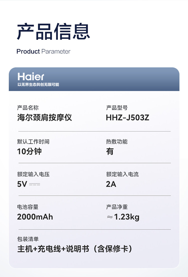 Haier/海尔颈椎按摩器肩颈按摩仪颈部斜方肌腰部背部热敷圣诞礼物
