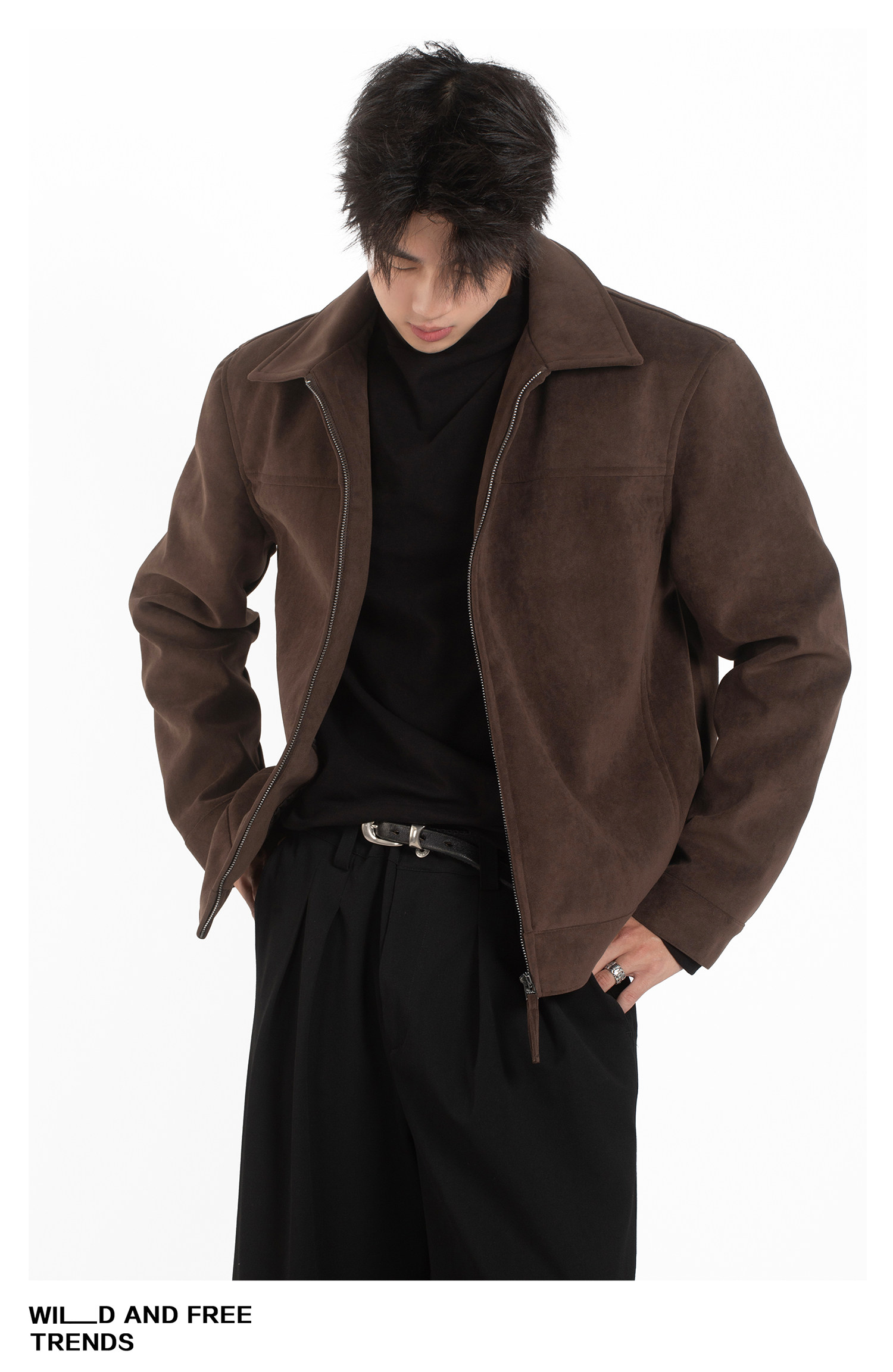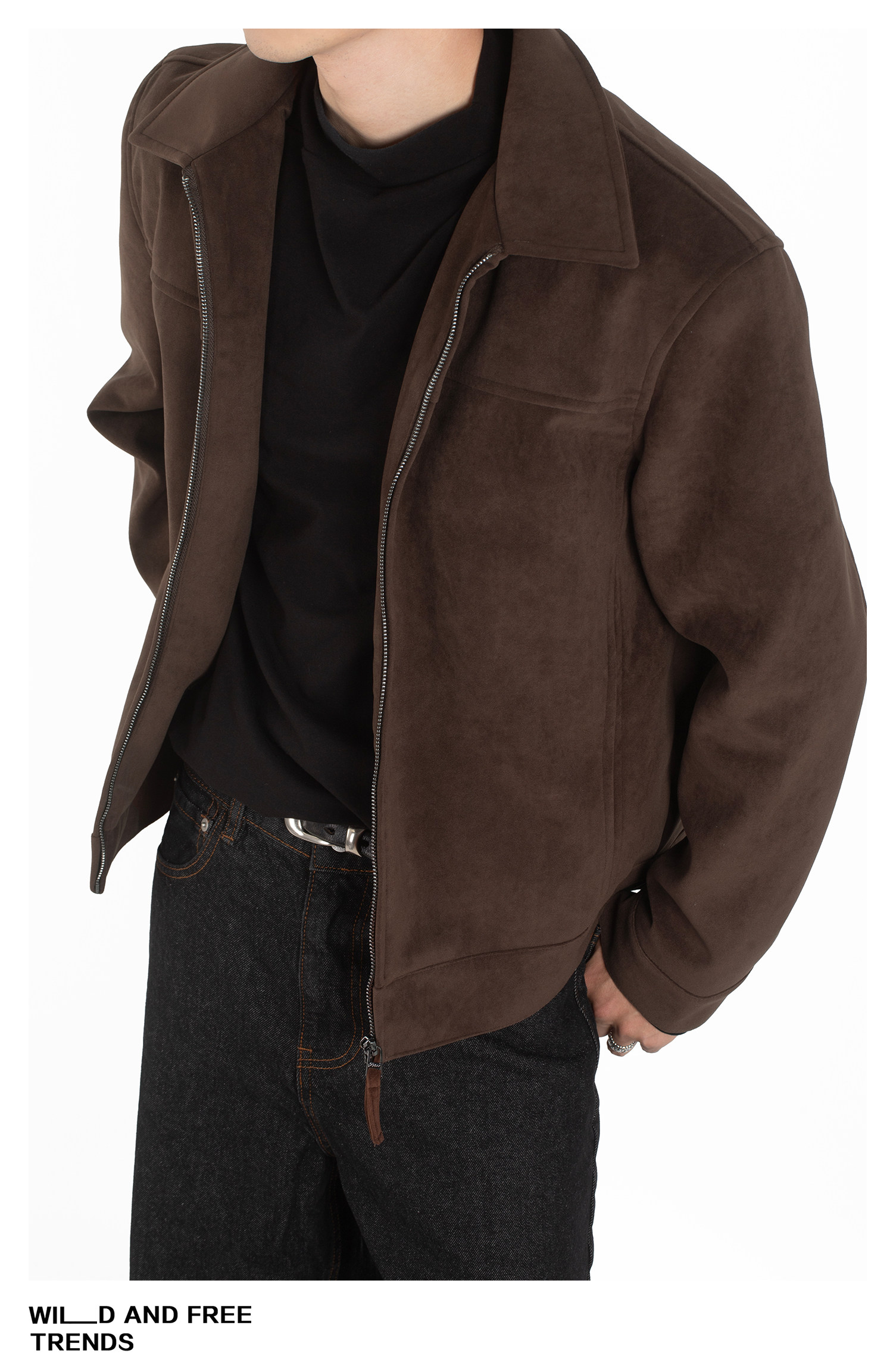 GANGURRU美式仿麂皮夹克磨砂高级感男士上衣户外翻领复古秋冬外套