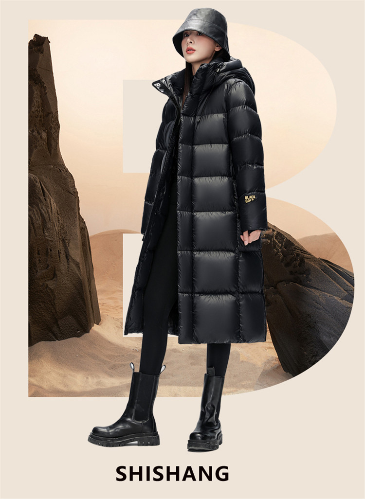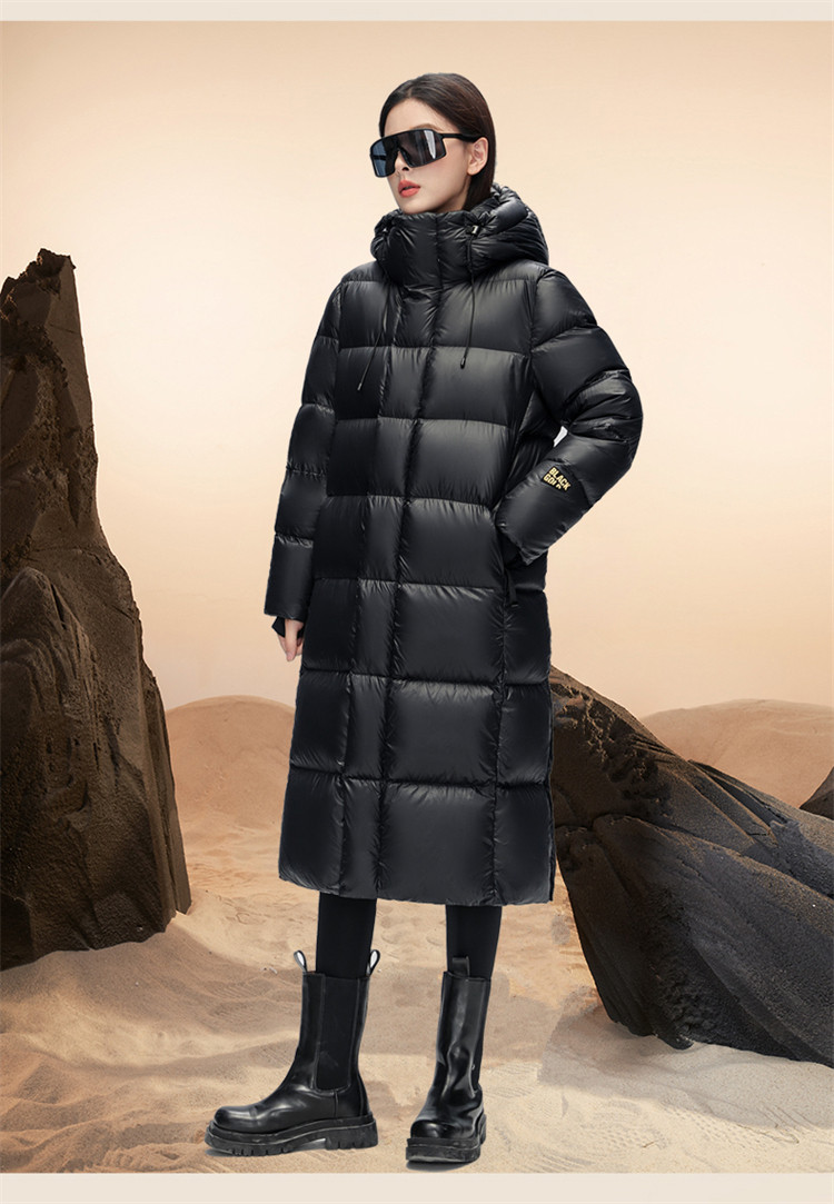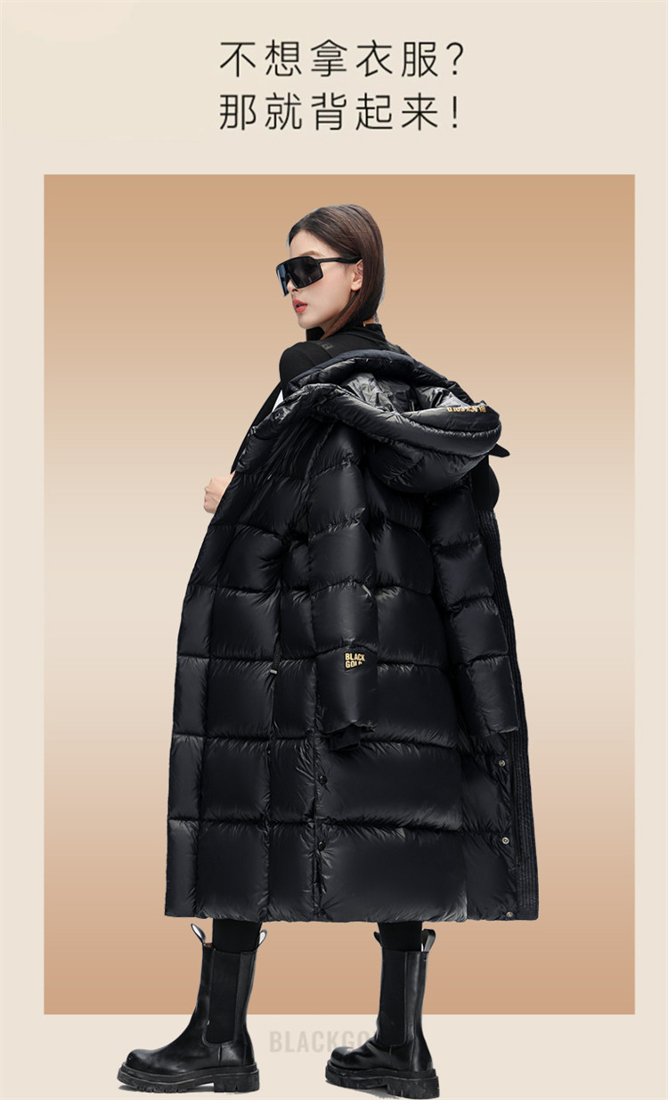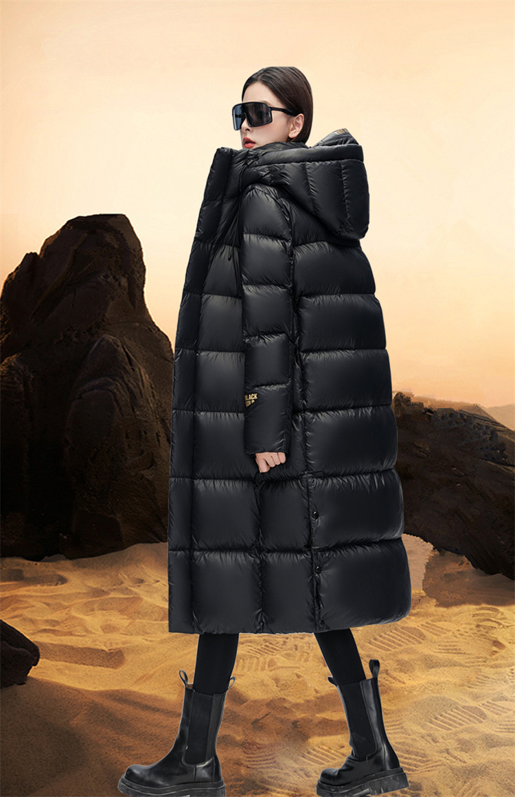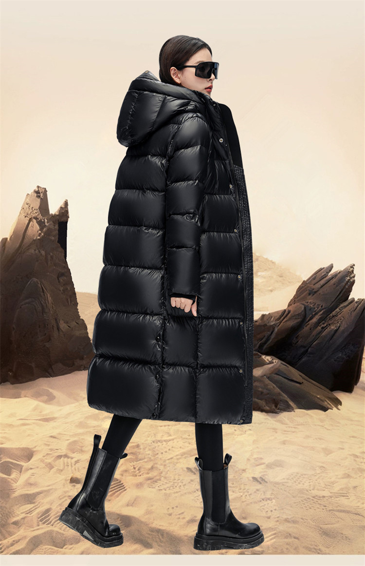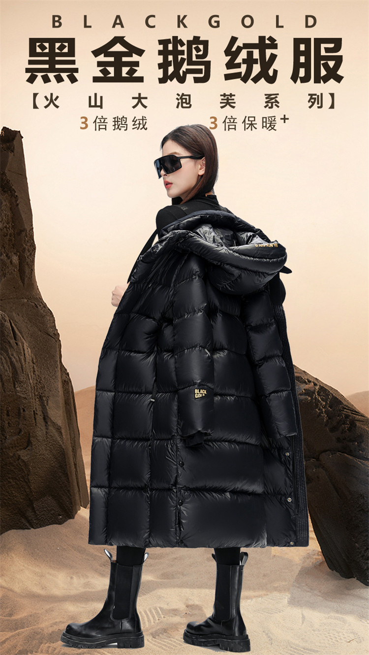 鸭鸭黑金鹅绒服女士2025冬季新款中长款过膝大克重加厚羽绒服外套